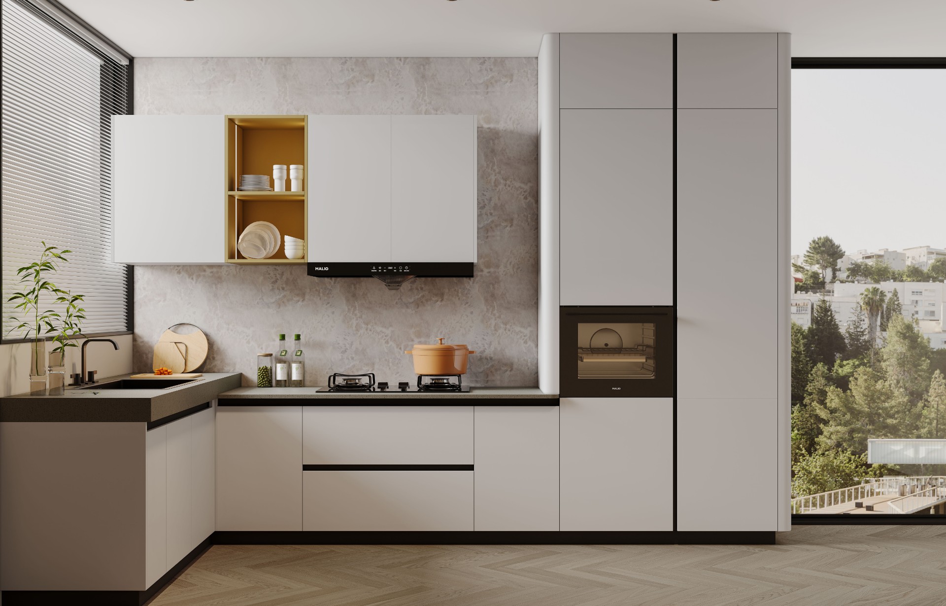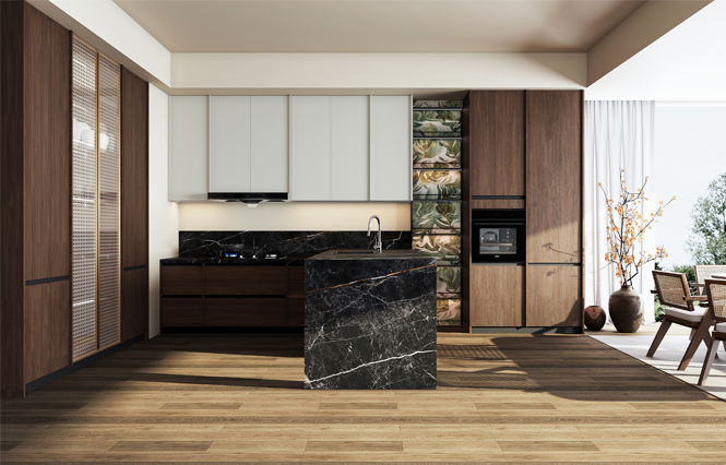 通過TG反波膽廚柜量體裁柜,定制出適合主廚下廚的烹飪區(qū)和洗滌區(qū)的舒適高度。